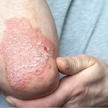 Psoriasis is an autoimmune disease that causes skin cells to grow too quickly, forming thick, silvery, scaly patches.