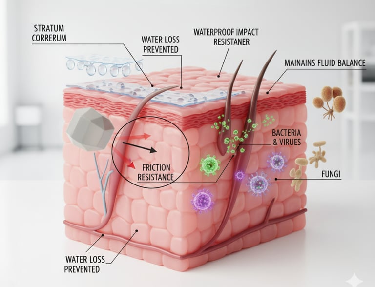 This is the skin's most fundamental and vital function. It can resist external physical damage (like friction and impact) and prevent pathogens such as bacteria, viruses, and fungi from entering the body. Additionally, the stratum corneum effectively prevents excessive water loss from the body, maintaining fluid balance.