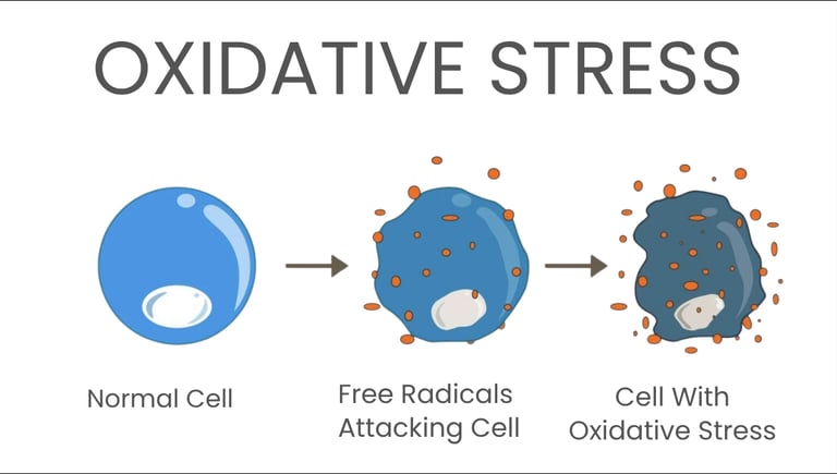 These free radicals are a natural byproduct of using oxygen to make energy, but when too many build up, they damage your healthy cells and DNA, this is what we call 'oxidative stress'.